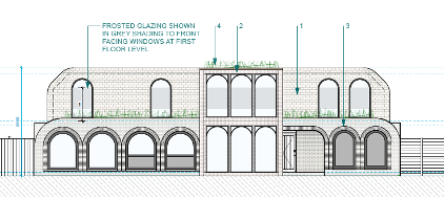 Planning permission granted in August 2024 for five flats (4 x 1 bedroom and 1 x 2 bedroom) in a three-storey building which will occupy much of the site. The scheme is to be car free, with a dedicated store for 6 cycle spaces. Construction is expected to take around 10 months to complete.